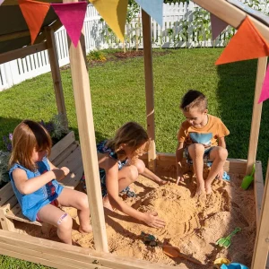 Kids outside Sandbox with Canopy